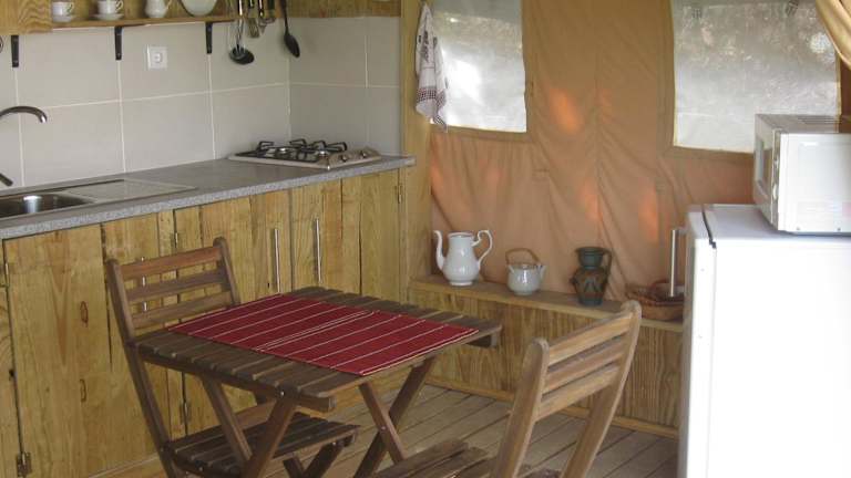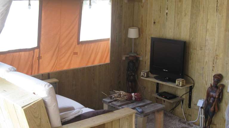 Das African Tent bietet luxuriöse Unterkünfte in einem einzigartigen Zeltstil. Das Zelt verfügt über eine Küchenzeile mit allen notwendigen Geräten, um Ihre eigenen Mahlzeiten zuzubereiten. Ein Flachbild-TV sorgt für Unterhaltung und kostenfreies WLAN ist im gesamten Zelt verfügbar. Genießen Sie den Komfort und die Gemütlichkeit des Zeltes und erleben Sie eine unvergessliche Übernachtung in der Natur.