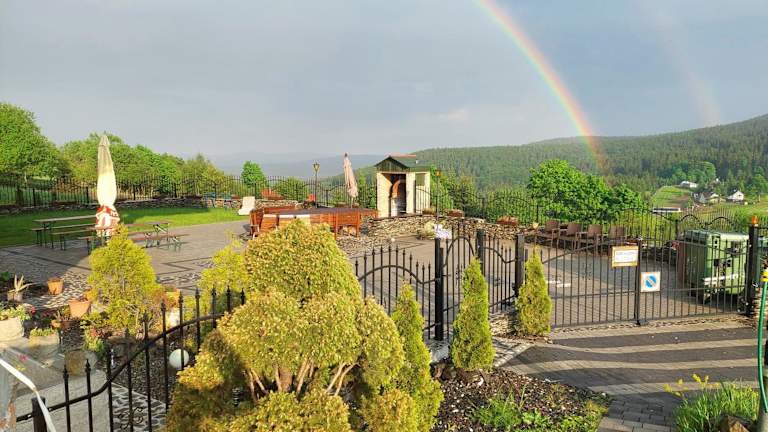 Das Agal befindet sich in Zieleniec, nur 7 km vom Chopin-Herrenhaus und dem Zentrum von Duszniki Zdrój entfernt. Die Lage des Resorts ermöglicht Ihnen einen einfachen Zugang zu den Skipisten und eine kurze Entfernung zu verschiedenen Sehenswürdigkeiten und Aktivitäten in der Umgebung.