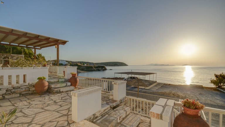 Im Agerino können Sie Ihr Frühstück im Café genießen und dabei den atemberaubenden Blick auf die Inseln Donousa und Amorgos genießen. Das Café bietet auch eine Auswahl an Getränken, so dass Sie den Tag in entspannter Atmosphäre ausklingen lassen können. In der Nähe finden Sie auch lokale Tavernen, in denen Sie traditionelle griechische Gerichte probieren können.