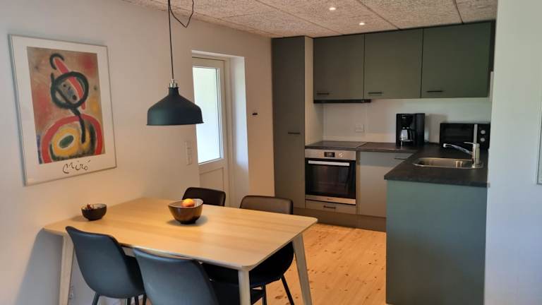 Das Apartment im Agermosegaard verfügt über 2 Schlafzimmer, ein gemütliches Wohnzimmer mit Flachbild-TV und eine voll ausgestattete Küche mit Kühlschrank und Geschirrspüler. Das Bad ist mit einer Dusche ausgestattet. Handtücher und Bettwäsche werden gestellt, sodass Sie sich um nichts kümmern müssen. Von der Terrasse aus haben Sie einen wunderschönen Blick auf den See.