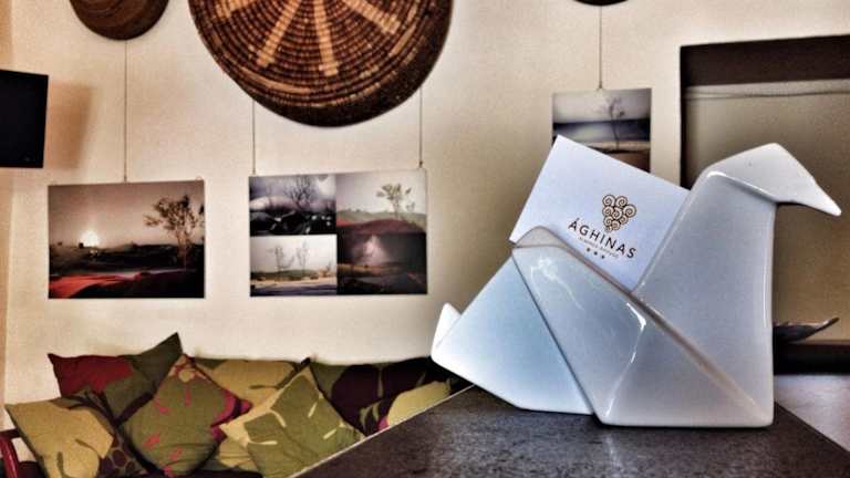 Die Zimmer im Hotel Aghinas sind im mediterranen Stil eingerichtet und verfügen über Fliesenböden sowie ein eigenes Bad mit Dusche. Im Erdgeschoss befindet sich ein behindertengerechtes Zimmer sowie die Rezeption. Auf der ersten Etage befinden sich die anderen Zimmer und eine kleine Küche, die für ein kleines Frühstück genutzt werden kann.