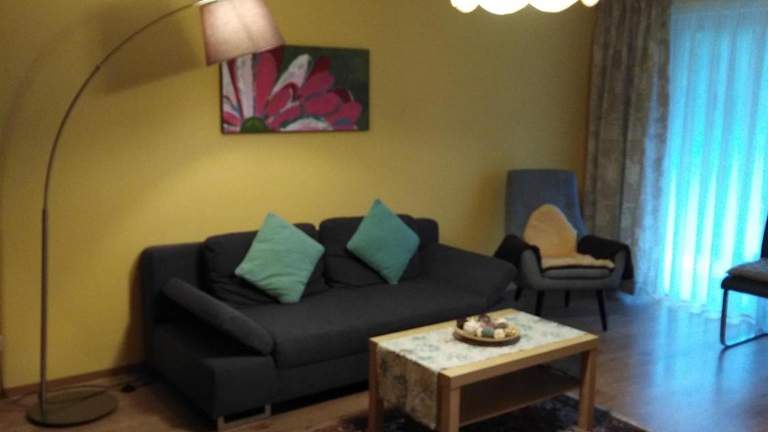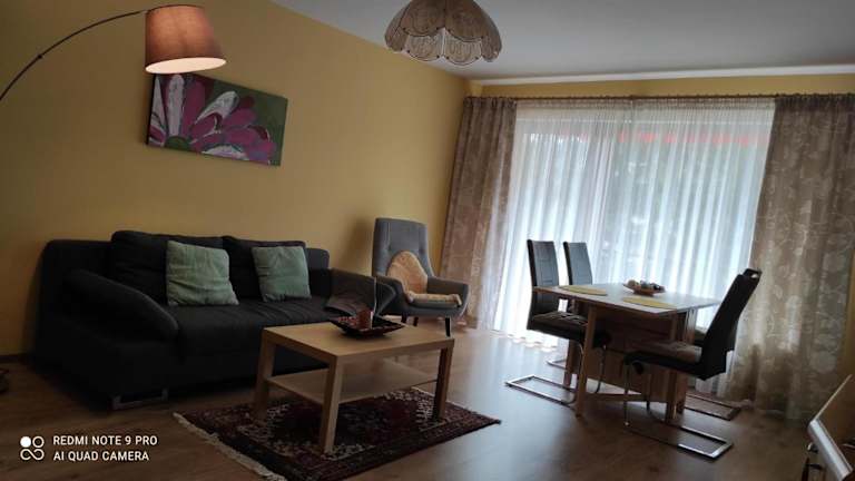 Die Ferienwohnung umfasst ein Schlafzimmer, ein Wohnzimmer und ein Badezimmer, das entweder mit einer Badewanne oder einer Dusche ausgestattet ist. Die Küchenzeile ist gut ausgestattet und verfügt über einen Kühlschrank sowie einen Ofen. Handtücher und Bettwäsche werden bereitgestellt.