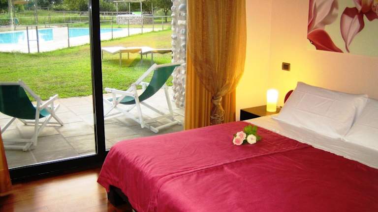 Kleines, feines Haus mit 6 Doppelzimmer, in zwei Flügel aufgeteilt. In der Mitte befindet sich der Frühstücksraum, und der Aufenthaltsraum. Alle Zimmer haben Terrasse mit Blick in den Garten, im Mittelpunkt der Pool.