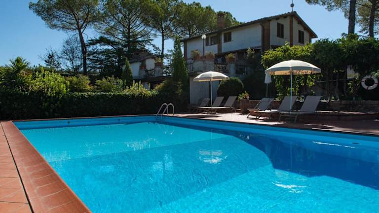 Das Agriturismo Il Colle in der Toskana ist ein charmantes Landhotel, das von den malerischen Hügeln umgeben ist. Hier können Sie einen entspannten Urlaub in einer idyllischen Umgebung genießen und dabei dennoch in der Nähe von Siena sein. Die Apartments sind im klassischen Stil eingerichtet und verfügen über alle Annehmlichkeiten, die Sie für einen komfortablen Aufenthalt benötigen. Der saisonale Außenpool lädt zum Entspannen ein und der Garten der Unterkunft bietet eine ruhige Oase zum Verweilen. Zudem können Sie kostenfrei Fahrräder ausleihen, um die Umgebung zu erkunden.