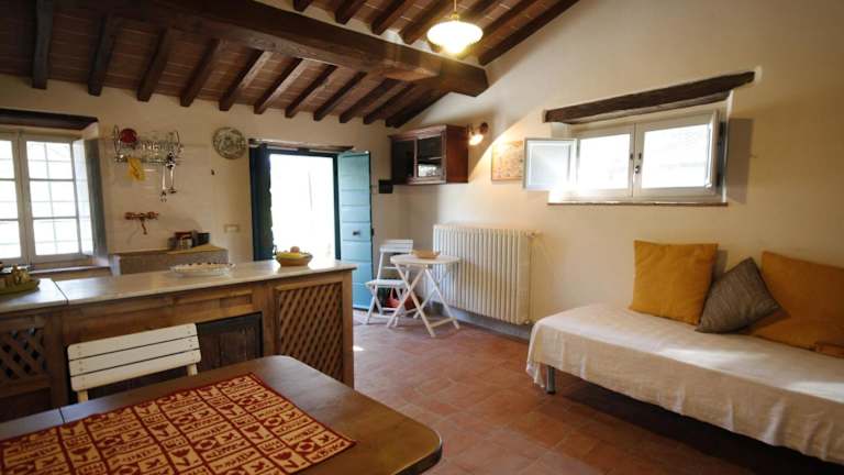 Die Apartments im Il Maggese sind im rustikalen Landhausstil eingerichtet und verfügen über Holzmöbel. Jedes Apartment bietet eine voll ausgestattete Küche mit Essbereich, in der Sie Ihre eigenen Mahlzeiten zubereiten können. Ein separates Schlafzimmer sorgt für Privatsphäre und ein eigenes Bad mit Badewanne oder Dusche ist ebenfalls vorhanden.