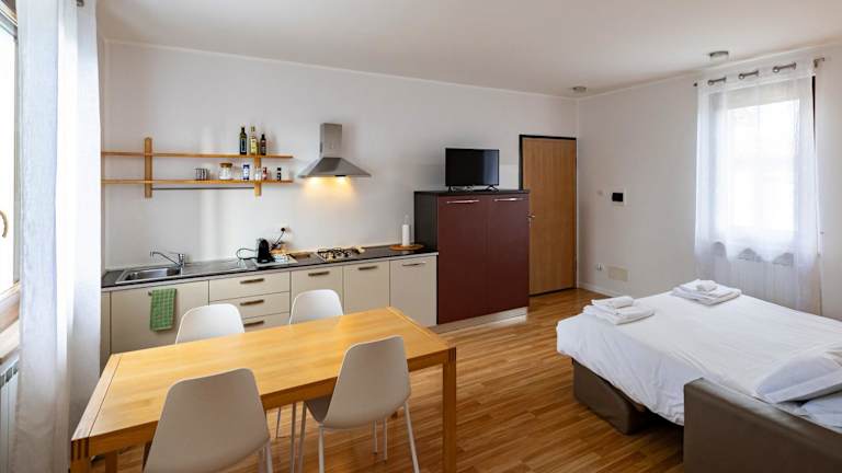 Die Unterkunft ist ausgestattet mit Klimaanlage, einer voll ausgestatteten Küche mit Essbereich, einem Flachbild-TV und einem eigenen Badezimmer, das über eine Dusche, kostenlose Pflegeprodukte und einen Haartrockner verfügt. Zur Zimmerausstattung gehören außerdem ein Kühlschrank, eine Herdplatte und eine Kaffeemaschine.