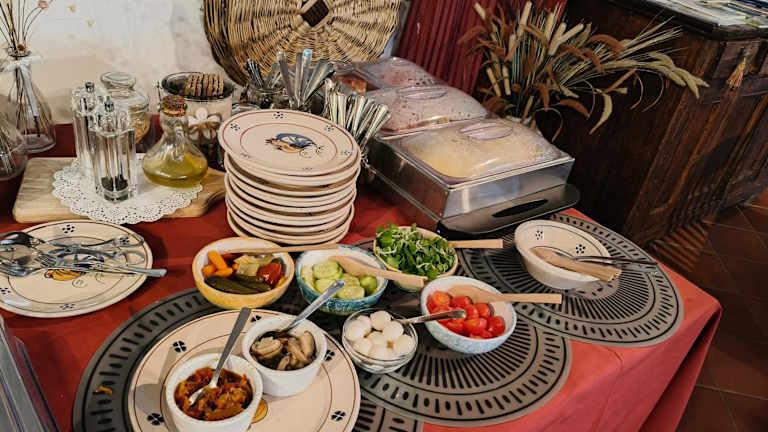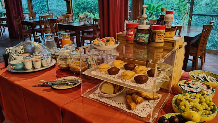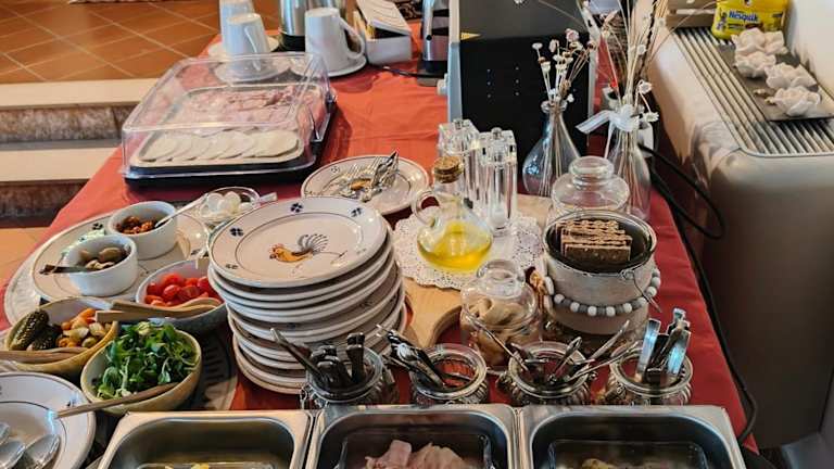 Das Hotel bietet ein süßes Frühstücksbuffet mit hausgemachten Kuchen sowie heißen und kalten Getränken. Genießen Sie die köstlichen Speisen und starten Sie gestärkt in den Tag.