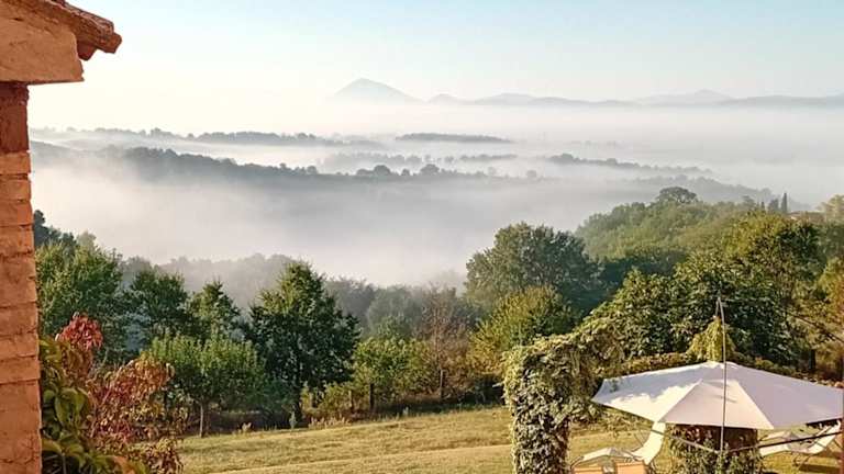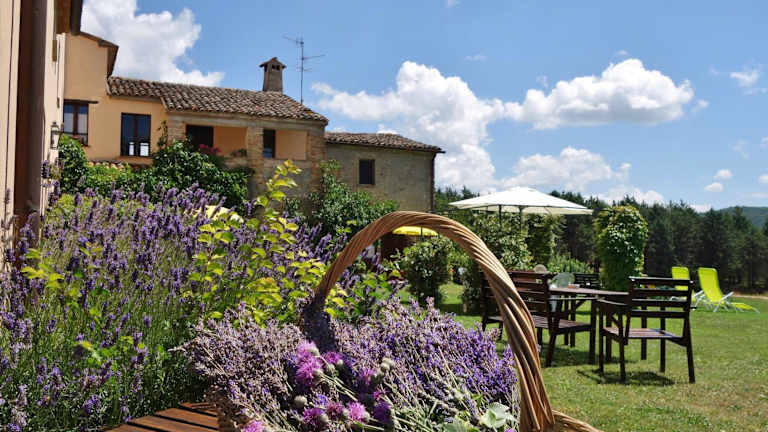 Das Agriturismo Monterosello liegt in den grünen Hügeln des oberen Tibertals, nur 10 km von der historischen Stadt Città di Castello entfernt. Die ruhige und abgeschiedene Lage bietet eine erholsame Umgebung, um die umbrische Landschaft zu genießen. Die Unterkunft besteht aus zwei restaurierten Bauernhäusern, die in einem 120 Hektar großen bewaldeten Park liegen und durch unbefestigte Straßen miteinander verbunden sind. Die Nähe zur Grenze zwischen Umbrien und der Toskana ermöglicht es den Gästen, einige der schönsten und historischsten Städte der Region wie Arezzo, Cortona, Perugia und Assisi zu erkunden. Der Trasimenische See ist ebenfalls nur eine kurze Fahrt entfernt.