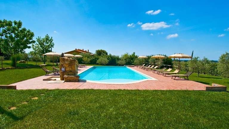 Das Agriturismo Poggio Di Maremma verfügt über einen 5000 m² großen Garten, in dem sich ein Swimmingpool und ein Whirlpool befinden. Hier können Sie an heißen Tagen eine erfrischende Abkühlung genießen oder einfach nur in einem Liegestuhl entspannen. Die umliegende Landschaft lädt zu Spaziergängen und Erkundungstouren ein. Die Strände der Umgebung sind ebenfalls leicht zu erreichen und bieten Wassersportmöglichkeiten und Entspannung am Meer.