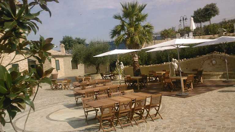 Im hauseigenen Restaurant werden traditionelle Gerichte aus der Region Marche serviert. Es werden zudem spezielle Ernährungsbedürfnisse berücksichtigt, wenn dies im Voraus angefragt wird. Gäste können auch im Garten speisen und verschiedene Getränke wie Wein und Sekt genießen.