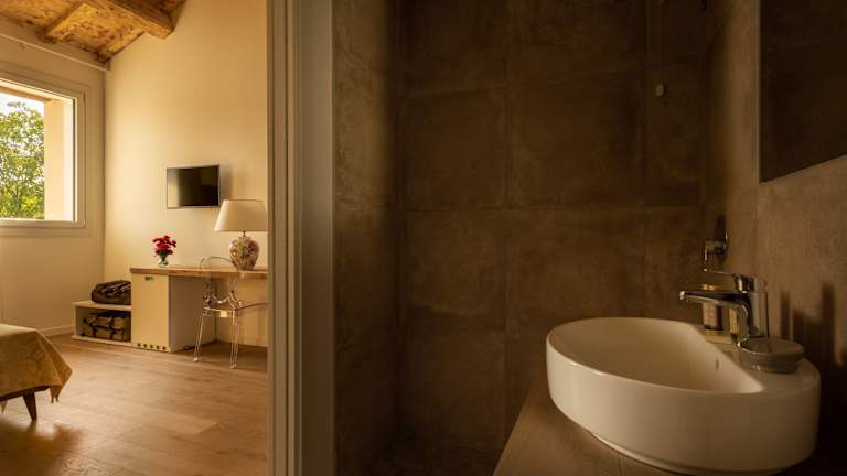 Jede Unterkunft im Agriturismo Maddalene101 verfügt über eine voll ausgestattete Küche mit einem Kühlschrank, so dass Sie Ihre eigenen Mahlzeiten zubereiten können. Ein gemütlicher Sitzbereich mit einem Sofa und ein Flachbild-TV sorgen für Komfort und Unterhaltung. Das private Badezimmer ist mit einer Farbtherapie-Dusche ausgestattet. Einige Unterkünfte bieten zudem einen Essbereich und einen Balkon, von dem aus Sie die Umgebung genießen können.