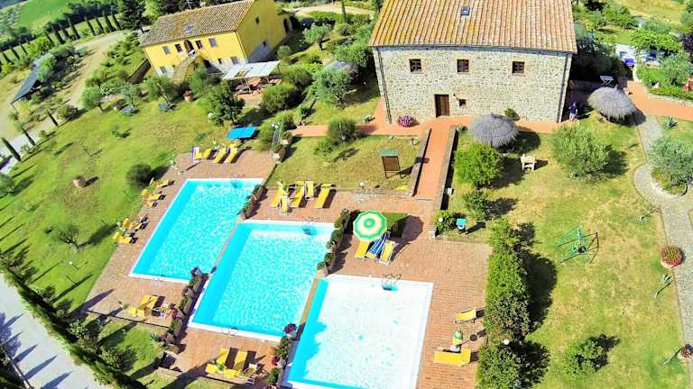 Das Relais Poggio al Vento befindet sich in der malerischen Toskana, nur 8 km vom mittelalterlichen Dorf Montegemoli entfernt. Hier können Sie die Schönheit der umliegenden Landschaft und die Ruhe der Natur genießen. Die berühmte Stadt Volterra mit ihren etruskischen und mittelalterlichen Denkmälern ist nur 20 km entfernt und das malerische Dorf San Gimignano erreichen Sie nach einer einstündigen Fahrt.