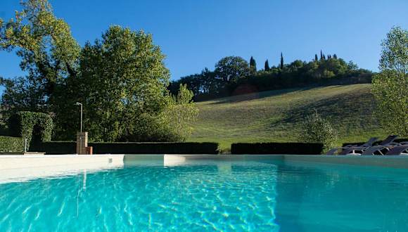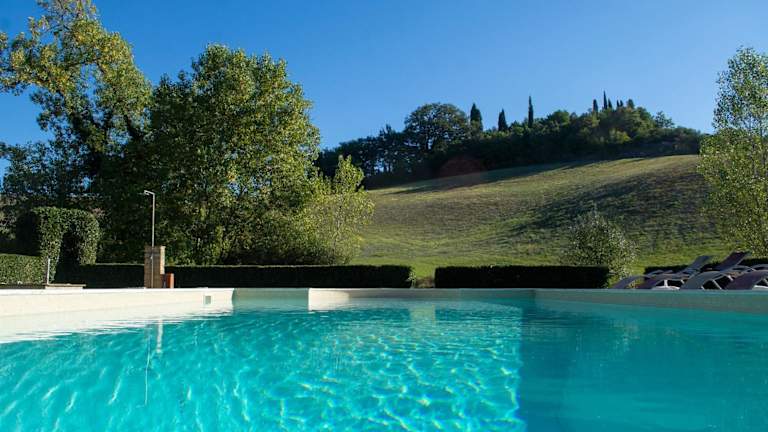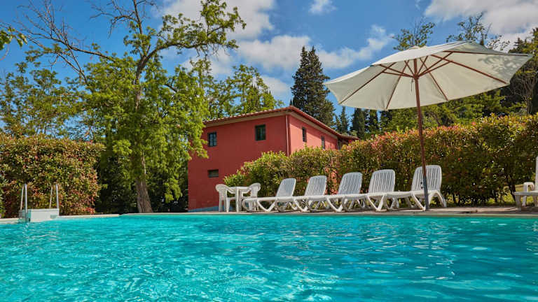 Das Resort verfügt über einen Außenpool, wo Sie sich an warmen Tagen erfrischen und auf den Liegestühlen entspannen können. Die umliegende Landschaft bietet Möglichkeiten zum Wandern und Radfahren. Für Weinliebhaber organisiert das Resort auch Weinproben, bei denen Sie die köstlichen Weine der Region kennenlernen können.