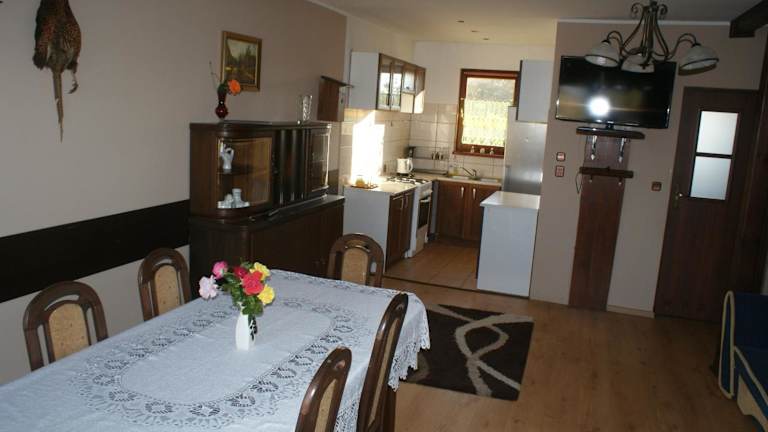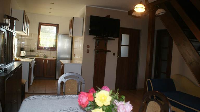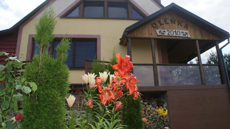Agrodomki Okej - Dom Oleńka ist eine Ferienhausunterkunft, die über einen Garten, eine Terrasse, ein Restaurant und eine Bar verfügt. Diese Einrichtung wird von einem privaten Gastgeber betrieben und bietet Platz für unterschiedliche Gästegruppen. Haustiere sind erlaubt und es gibt einen Parkplatz vor Ort.