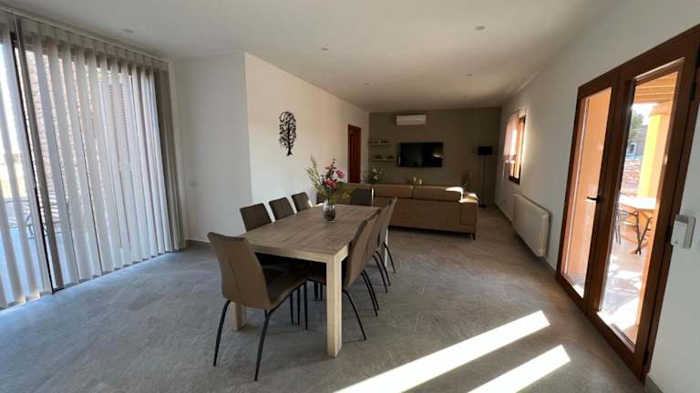 Das Ferienhaus ist klimatisiert und besteht aus 3 Schlafzimmern, einem Wohnzimmer und einer voll ausgestatteten Küche, die mit einem Kühlschrank und einer Kaffeemaschine versehen ist. Es gibt 2 Badezimmer, die mit einem Bidet und einer Dusche ausgestattet sind. Handtücher und Bettwäsche werden bereitgestellt.
