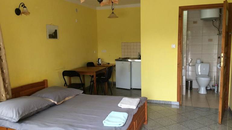 Die Unterkünfte im Agropensjonat Furtak verfügen über komfortable Einrichtungen, darunter ein Flachbild-TV und ein eigenes Bad mit einer Dusche. In der Küchenzeile finden Sie alles, was Sie für die Zubereitung von Mahlzeiten benötigen, einschließlich Kühlschrank, Mikrowelle und Kochfeld.