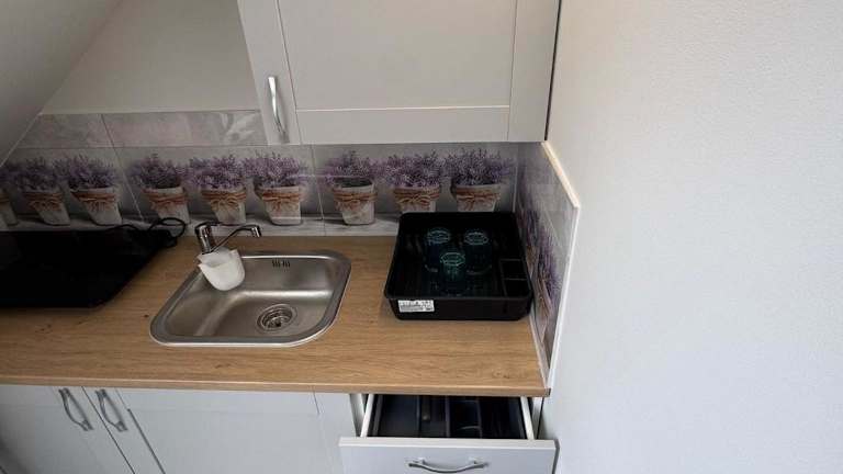 Die Ferienwohnung verfügt über eine voll ausgestattete Küchenzeile, die Selbstverpflegung ermöglicht. Grillmöglichkeiten stehen ebenfalls zur Verfügung.