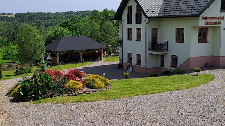 Agroturystyka Za Dębem ist eine Unterkunft mit einem Garten, auf dem sich eine Terrasse befindet, von der aus die Gäste einen Blick auf die Berge genießen können. Kostenloses WLAN steht zur Verfügung, und in einigen Unterkünften sind Balkone vorhanden. Ebenfalls bieten einige Wohneinheiten einen Kabel-Flachbild-TV sowie einen Sitzbereich.