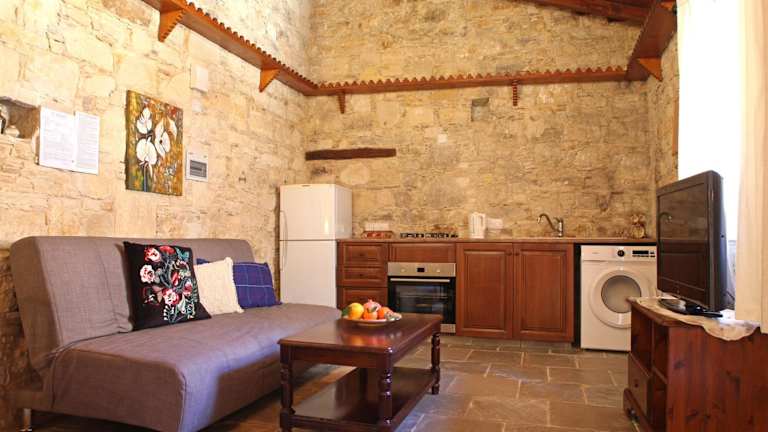 Die Unterkünfte im Agrovino Lofou sind elegant dekoriert und verfügen über warme Holzmöbel und erdige Farben. Jede Unterkunft bietet eine gut ausgestattete Küche oder Küchenzeile, in der Sie Ihre eigenen Mahlzeiten zubereiten können. Einige Zimmer verfügen auch über einen gemütlichen Kamin im Wohnzimmer. Ein Flachbild-TV und kostenfreies WLAN sind ebenfalls vorhanden. Genießen Sie die gemütliche Atmosphäre und den Komfort dieser traditionellen Unterkunft.
