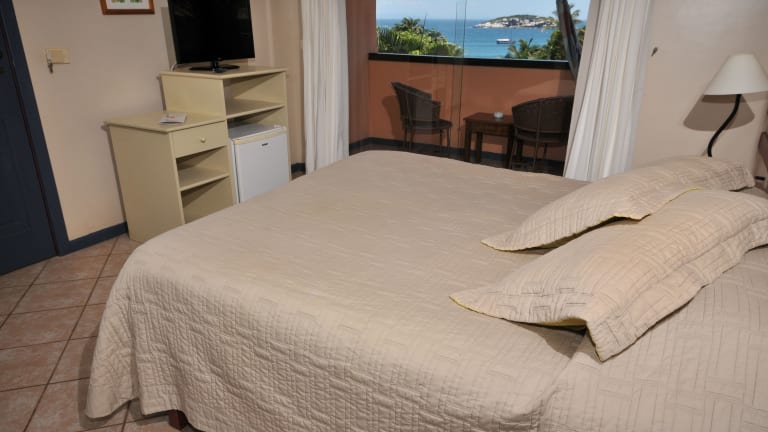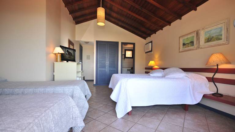 Die Zimmer sind mit Klimaanlage ausgestattet und verfügen über einen Balkon oder eine private Terrasse mit Meerblick. Zur Ausstattung gehören ein Doppelbett, Queensize- oder Kingsize-Bett, ein Safe, eine Minibar sowie ein Kühlschrank. Eine Hosenpresse, ein Telefon, ein Fernseher mit Satelliten-/Kabelempfang und WLAN sind ebenfalls vorhanden. Im Badezimmer finden sich eine Dusche, eine Badewanne und ein Haartrockner. Die Unterkunft bietet sowohl Familienzimmer als auch Nichtraucherzimmer.