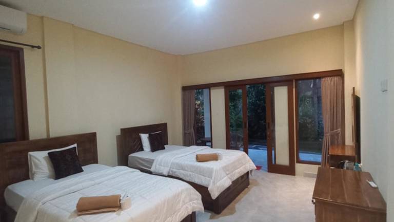 Die Zimmer der Agung Trisna Bungalows sind mit einem Balkon mit Poolblick ausgestattet. Es gibt auch Zimmer mit Flussblick. Alle Unterkünfte verfügen über eine Veranda oder einen Patio, Klimaanlage und ein eigenes Badezimmer.