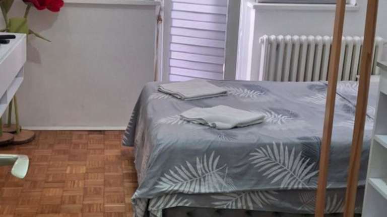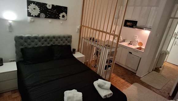 Die Ferienwohnung verfügt über ein Schlafzimmer und ein Badezimmer. Zur Ausstattung gehören Bettwäsche, Handtücher, ein Flachbild-TV mit Kabelkanälen, ein Essbereich, eine voll ausgestattete Küche sowie eine Terrasse mit Stadtblick.