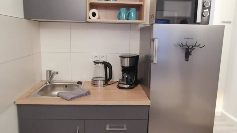 Die Zimmer sind ausgestattet mit einem Kühlschrank, einer Mikrowelle, einer Kaffeemaschine, einem eigenen Badezimmer, einer Dusche, einem Haartrockner, einem Kleiderschrank sowie Bettwäsche.