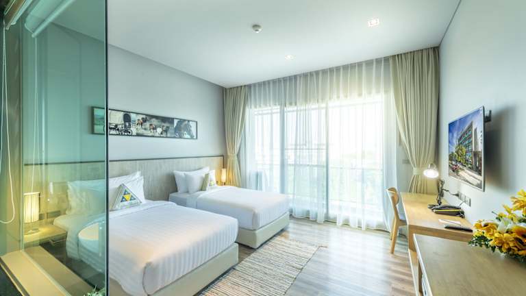Die klimatisierten Zimmer im Aisana Hotel Korat sind komfortabel und modern eingerichtet. Jedes Zimmer verfügt über einen eigenen Sitzbereich, einen Flachbild-Sat-TV und einen Safe. Das private Badezimmer ist mit einer Dusche, kostenfreien Pflegeprodukten und einem Haartrockner ausgestattet. Einige Zimmer bieten eine Terrasse mit Blick auf die Stadt. Zur Ausstattung gehören auch ein Wasserkocher und ein Kühlschrank.