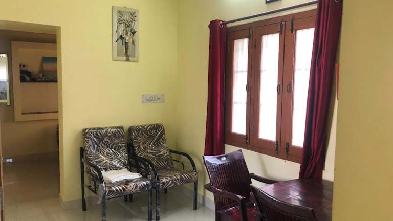 Das klimatisierte Apartment im Aishwarya Nivas verfügt über 2 Schlafzimmer und eine voll ausgestattete Küche. Die Einrichtung ist modern und gemütlich, und von der Terrasse aus haben Sie einen wunderschönen Blick auf den Garten. Handtücher und Bettwäsche werden gestellt, um Ihren Aufenthalt so angenehm wie möglich zu gestalten.