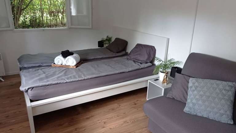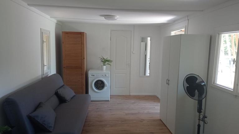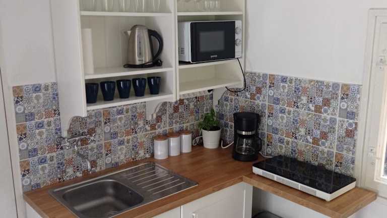 Das Ferienhaus verfügt über 2 Schlafzimmer und eine Küchenzeile, die mit einem Kühlschrank, einem Geschirrspüler und einer Kaffeemaschine ausgestattet ist. Handtücher und Bettwäsche sind ebenfalls vorhanden.