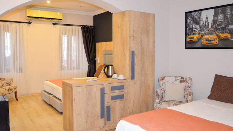 Das Akkan Hotel befindet sich im Zentrum von Bodrum, an einer Straße mit vielen Bars und nur wenige Schritte vom Meer entfernt. Die Lage ist perfekt für Gäste, die das pulsierende Nachtleben der Stadt erkunden möchten. Das Hotel bietet auch einen eigenen Strand, an dem Sie sich entspannen und die Sonne genießen können. In nur 10 Gehminuten erreichen Sie den Busterminal Bodrum und die historische Burg von Bodrum ist nur 500 m entfernt.
