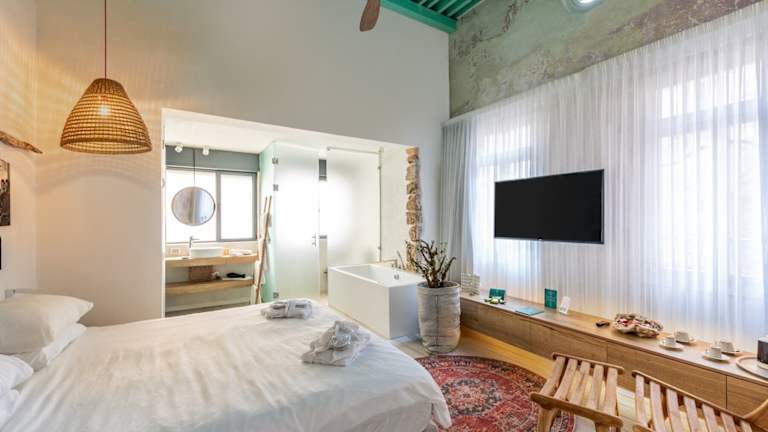 Das Akotika boutique befindet sich in der historischen Stadt Akkon, die für ihre beeindruckende Architektur und ihre kulturelle Bedeutung bekannt ist. Die Unterkunft liegt in der Nähe des Strandes und bietet eine gute Anbindung an die Bahá'í-Gärten, die zu den UNESCO-Weltkulturerbestätten gehören. Die Umgebung bietet verschiedene Freizeitmöglichkeiten wie Angeln und andere Outdoor-Aktivitäten.