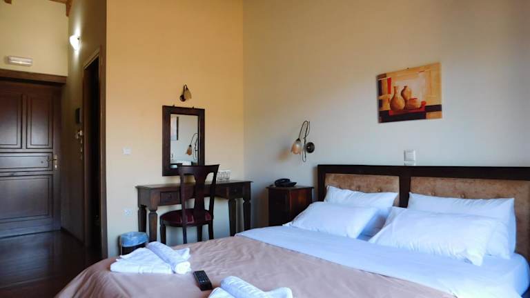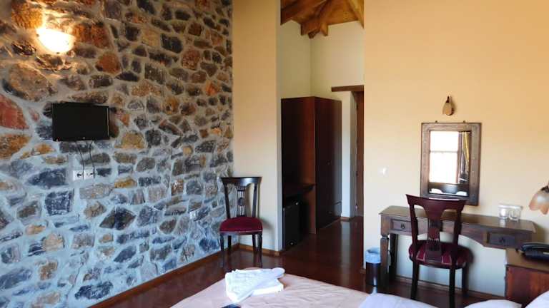 Die Zimmer im Akrothea Hotel sind mit einem Balkon mit Bergblick ausgestattet. Jedes Zimmer verfügt über ein eigenes Badezimmer mit kostenlosen Pflegeprodukten, einem Haartrockner und einer Dusche. Weiterhin sind die Zimmer mit einem Schreibtisch und einem Flachbild-TV ausgestattet.