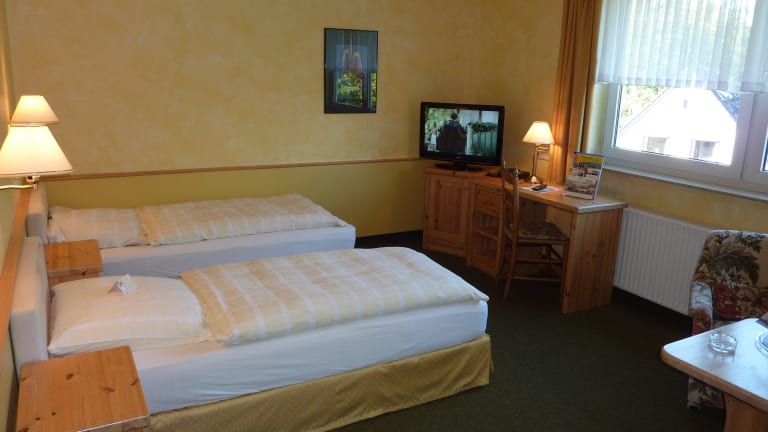Genießen Sie Ihren Aufenthalt in einem der 22 Doppelzimmer / Zweibettzimmer und 8 Einzelzimmer in der wunderschönen Umgebung des Naturparks Wildeshauser Geest in der Nähe von Bremen. Alle Zimmer sind mit mit Dusche, WC, Fön, Direktwahl-Telefon, T-Mobil HotSpot 32" Fernsehern und SKY-Hotel-TV ausgestattet. Die Zimmer im Gästehaus und die 1. Etage im Haupthaus sind Nichtraucher-Zimmer. In 4 Zimmern des Haupthauses ist das Rauchen gestattet.
