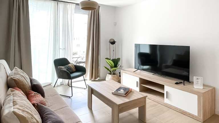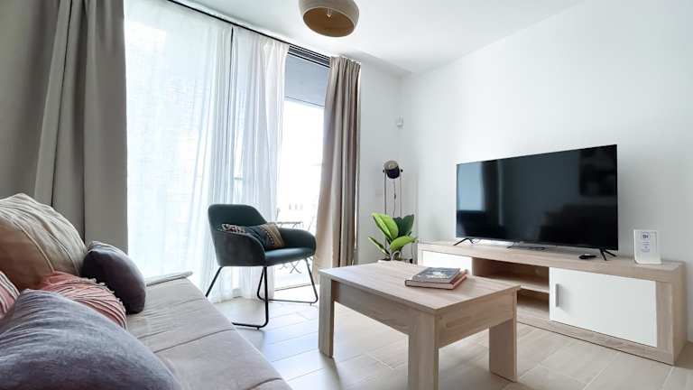 Die Ferienwohnung besteht aus einem Schlafzimmer und einem Wohnzimmer und ist mit einem Flachbild-TV sowie einer gut ausgestatteten Küche, die einen Kühlschrank und eine Mikrowelle umfasst, ausgestattet. Das Badezimmer verfügt über eine Dusche. In der Unterkunft werden Handtücher und Bettwäsche bereitgestellt. Die Wohnung bietet zudem eine Terrasse mit Stadtblick.