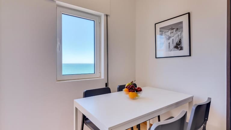 Die Ferienwohnung beinhaltet 2 Schlafzimmer sowie 1 Badezimmer. Zur Ausstattung gehören Bettwäsche, Handtücher, ein TV mit Satellitenkanälen, ein Essbereich, eine voll ausgestattete Küche und eine Terrasse mit Meerblick.