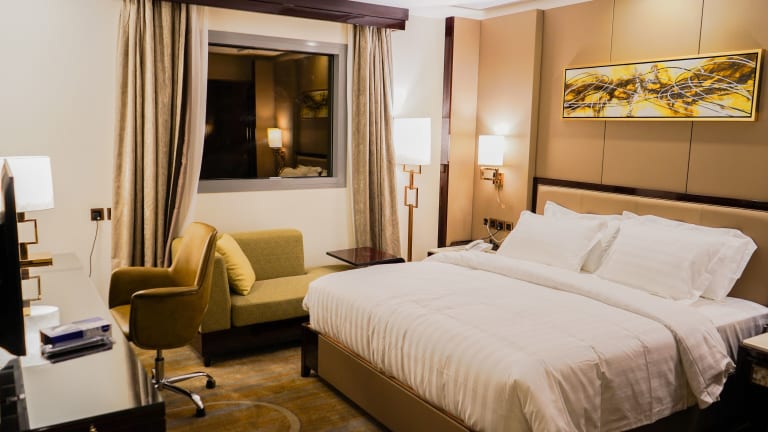 Die Zimmer im Al Ertiqaa Hotel sind mit einem Doppelbett oder Kingsize-Bett ausgestattet und verfügen über Annehmlichkeiten wie einen Safe, eine Minibar, ein Telefon, Sat-TV, WLAN sowie ein eigenes Badezimmer mit Dusche und Haartrockner. Alle Zimmer bieten Stadtblick und sind mit Bettwäsche und Handtüchern ausgestattet.