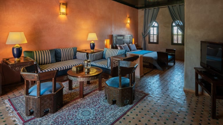 Die Suiten im Riad Al Riadinou sind im traditionellen marokkanischen Stil eingerichtet und bieten eine authentische Atmosphäre. Jede Suite verfügt über eine Klimaanlage, einen Balkon mit Blick auf den Garten und den Pool sowie ein eigenes Badezimmer mit kostenlosen Pflegeprodukten und entweder einer Badewanne oder einer Dusche. Zusätzlich gibt es einen gemütlichen Sitzbereich mit einem Flachbild-TV und einem Kamin, der Ihnen an kühleren Abenden Wärme spendet.