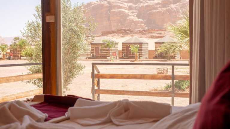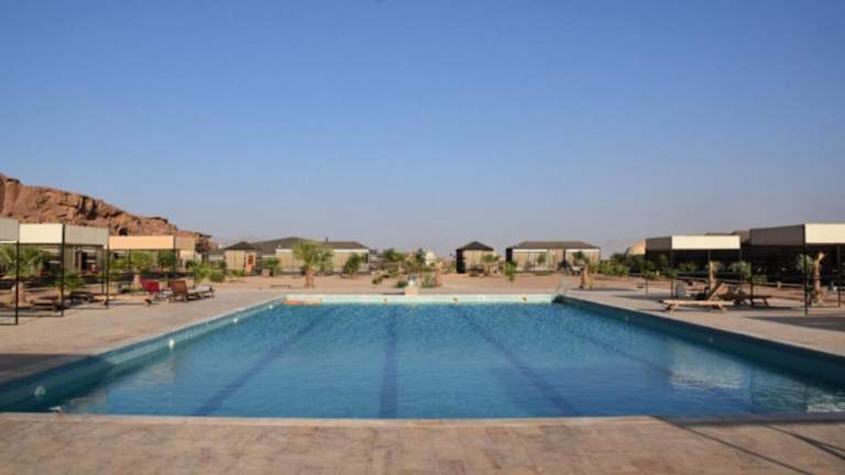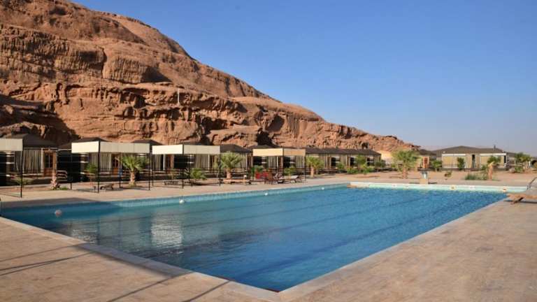 Das Al Sultana Luxury Camp liegt in Wadi Rum und bietet seinen Gästen eine einzigartige Lage inmitten der beeindruckenden Wüstenlandschaft. Die Umgebung lädt zu Erkundungen und Abenteuern ein, sei es bei einer Jeep-Tour durch die Dünen, beim Wandern in den Bergen oder beim Kamelreiten. Das Camp bietet auch eine ruhige und entspannte Atmosphäre, in der Gäste die Stille der Wüste genießen können.