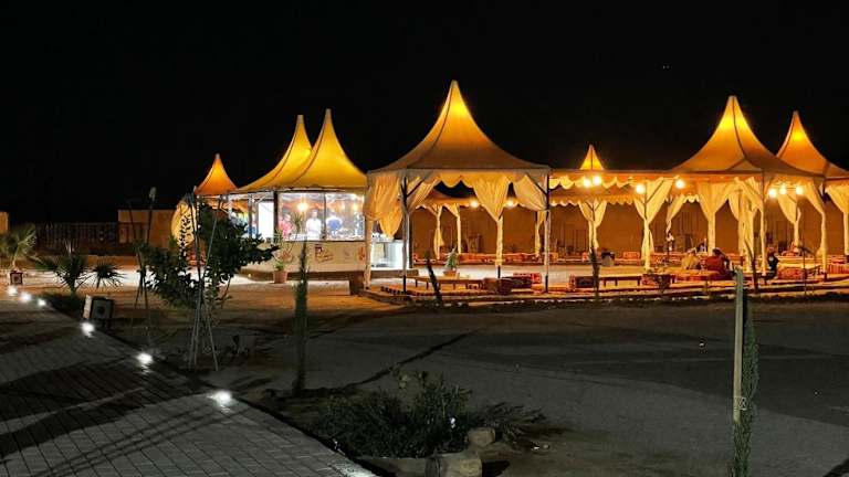 Das Al Sultana Luxury Camp in Wadi Rum bietet seinen Gästen einen luxuriösen Aufenthalt inmitten der atemberaubenden Landschaft von Wadi Rum. Mit einem saisonalen Außenpool, kostenfreiem WLAN und komfortablen Unterkünften ist dieses Camp der ideale Ort, um die Schönheit der Umgebung zu erkunden und sich zu entspannen. Genießen Sie ein köstliches Frühstück und nutzen Sie die verschiedenen Freizeitmöglichkeiten wie Billard und Radfahren. Der internationale Flughafen King Hussein ist nur 74 km entfernt, und ein kostenpflichtiger Flughafentransfer wird angeboten.