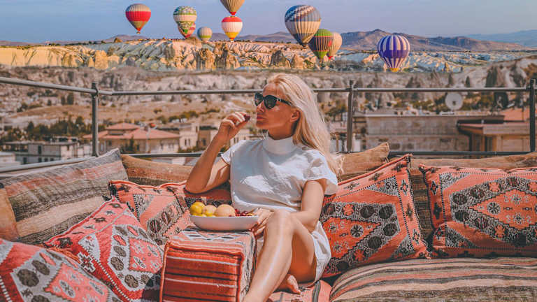 • Die Dachterrasse bietet einen tollen Blick auf die Heißluftballons.