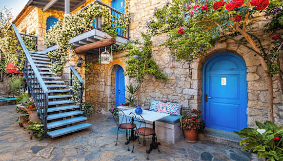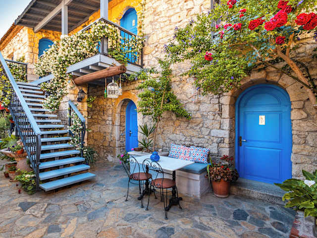 Das Alacati Eski Ev Hotel ist ein charmantes und historisches Hotel im Herzen von Alaçatı. Das renovierte griechische Steinhaus strahlt einen ursprünglichen Charme aus und bietet einen einladenden Innenhof mit Blumen, einem Teich und gemütlichen Diwanen. Die Zimmer sind geschmackvoll in blau und weiß gestaltet und verfügen über moderne Annehmlichkeiten wie einen Flachbild-Sat-TV und eine Minibar. Jeden Morgen erwartet Sie ein traditionelles türkisches Frühstück im Innenhof und zum 5-Uhr-Tee werden hausgemachtes Gebäck und erfrischende Getränke serviert. Das Hotel liegt nur wenige Kilometer von den Stränden von Alacati und Ilica entfernt und bietet einen kostenpflichtigen Flughafentransfer zum Flughafen Izmir.