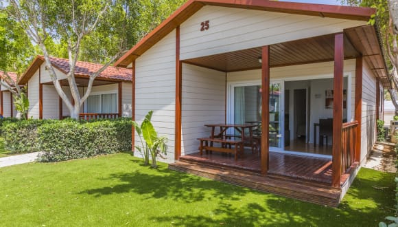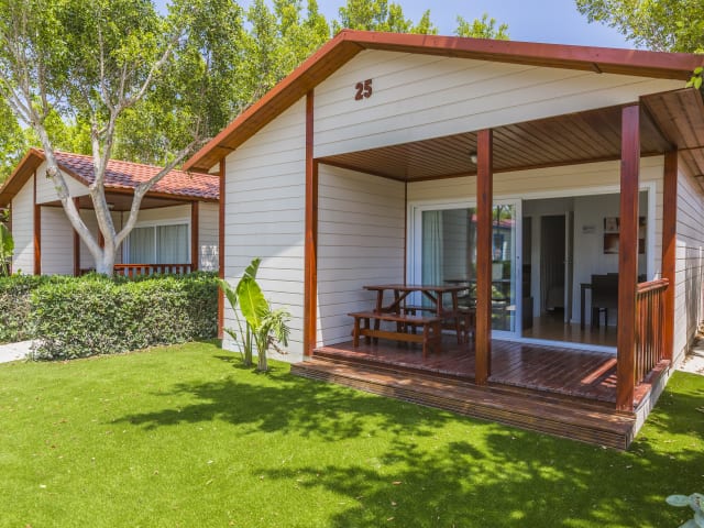 Mit mehr als 41.700 m2 verfügt die Anlage über mehr als 120 voll ausgestattete Hütten, die Sie zu einem mediterranen Abenteuer in einer familiären, gemütlichen und vertrauenswürdigen Atmosphäre führen, in der Sie gleichermaßen genießen und ausruhen können.