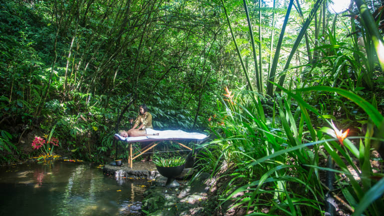 Das luxuriöse Alassari Plantation Resort in Selemadeg ist der ideale Ort, um den Reichtum der balinesischen Kultur zu erleben. Das Resort liegt hoch im Regenwald am heiligen Vulkan Mount Batu Karu und bietet kostenfreies WLAN, einen Außenpool, ein Wellnesscenter und ein Restaurant. Die exklusive private Villa ist mit importiertem geschnitztem Teakholz ausgestattet und bietet einen TV, einen DVD-Player und ein eigenes Bad. Genießen Sie die Ruhe und Schönheit der Umgebung, während Sie sich im Resort entspannen.