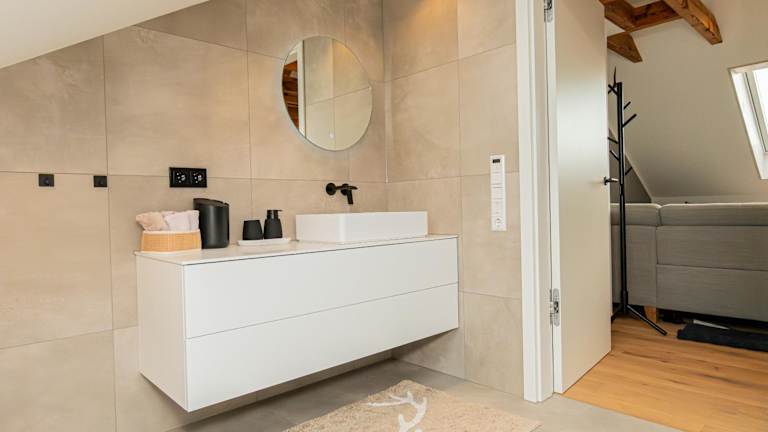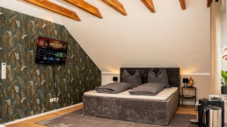 Die Ferienwohnung verfügt über ein Wohnzimmer mit Flachbild-TV, ein Schlafzimmer und ein Badezimmer mit Dusche sowie Badewanne. Zudem steht den Gästen eine Sonnenterrasse zur Verfügung. Handtücher und Bettwäsche werden bereitgestellt, und die Wohnung ist mit Parkettböden ausgestattet.