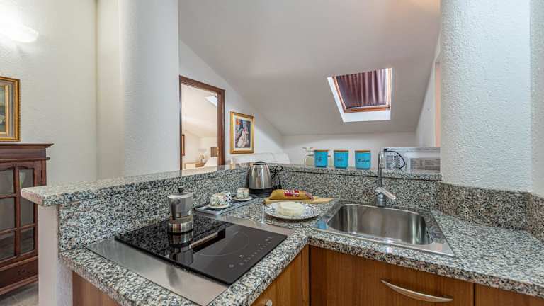 Die Ferienwohnung verfügt über 2 Schlafzimmer, ein Wohnzimmer mit Flachbild-TV, eine gut ausgestattete Küche mit Kühlschrank und Mikrowelle sowie ein Badezimmer mit Bidet. Handtücher und Bettwäsche sind ebenfalls vorhanden.
