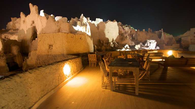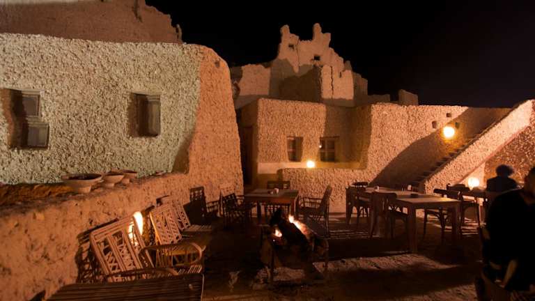Im Restaurant des Albabenshal Lodge Siwa können Sie traditionelle Spezialitäten à la carte genießen. Das Restaurant befindet sich auf der Hauptterrasse und verwendet frische Zutaten für die Zubereitung der Gerichte. Probieren Sie unbedingt den Kurkuma-Reis, die Chakchouka und das Fetir, ein Fladenbrot mit tausend Schichten.
