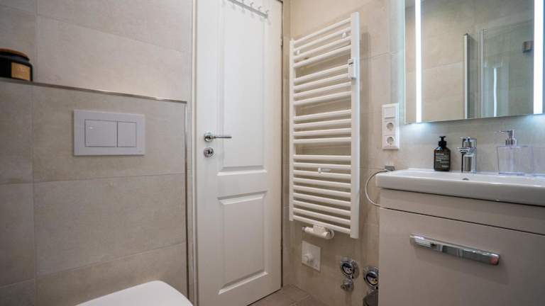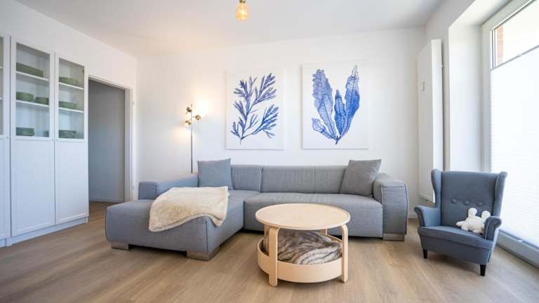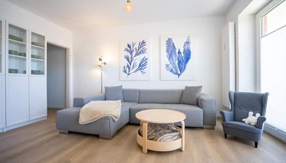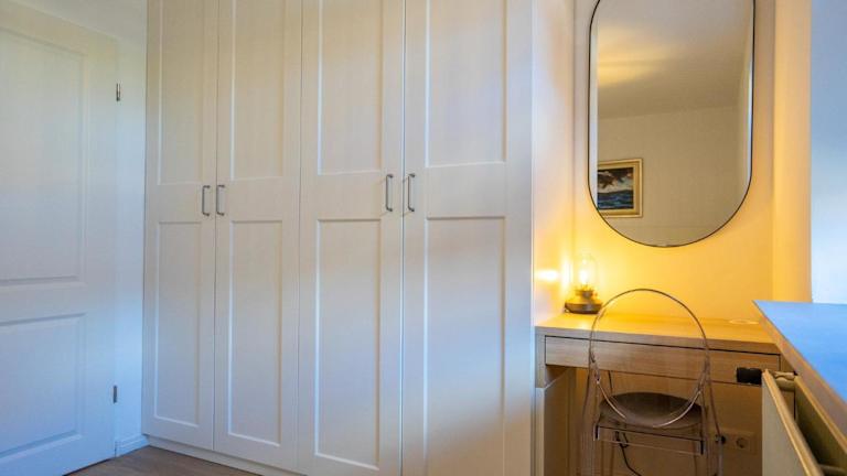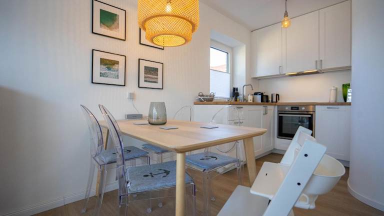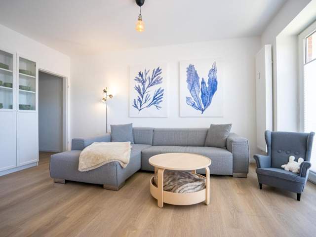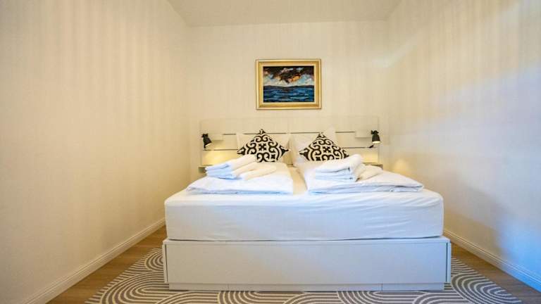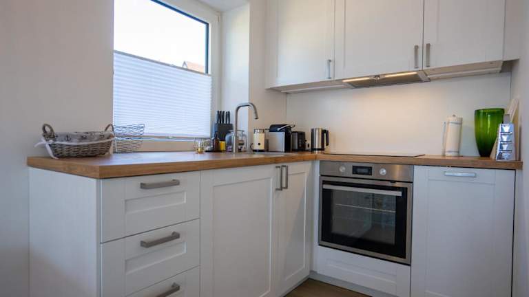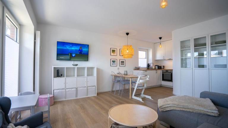 Die Ferienwohnung umfasst zwei Schlafzimmer und ist mit einem TV sowie einer voll ausgestatteten Küche ausgestattet. Die Küche beinhaltet einen Kühlschrank, einen Geschirrspüler, eine Waschmaschine, einen Ofen und eine Herdplatte.