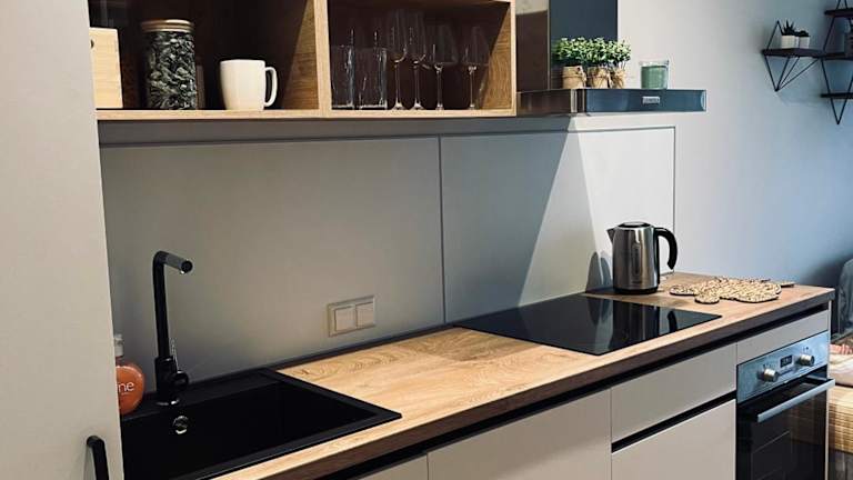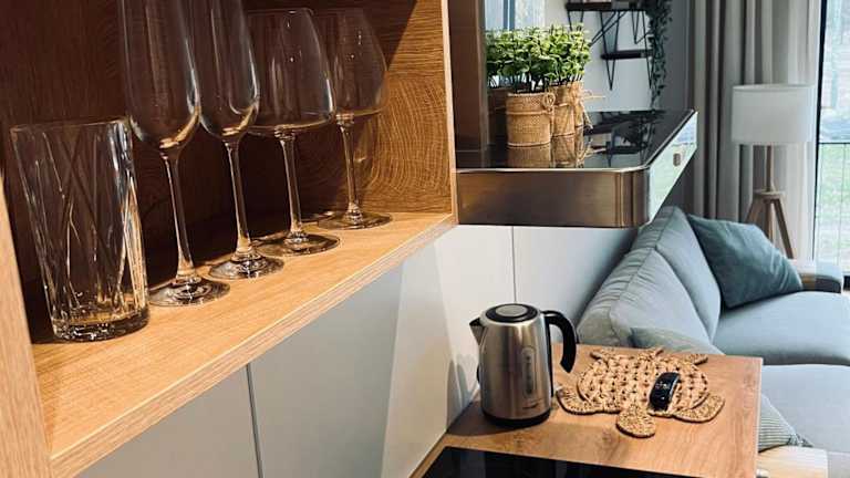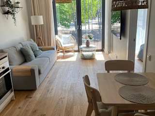 Die Ferienwohnung ist klimatisiert und verfügt über ein Schlafzimmer, ein Wohnzimmer sowie eine voll ausgestattete Küche mit Geschirrspüler und Wasserkocher. Es gibt ein Badezimmer mit Dusche und kostenlosen Pflegeprodukten. Handtücher und Bettwäsche werden bereitgestellt.