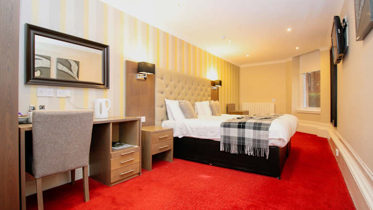 Das Albion Hotel im lebendigen West End von Glasgow bietet bunte Zimmer mit kostenlosem WLAN in einem historischen Stadthaus. Das Hotel ist nur 20 Gehminuten vom Zentrum von Glasgow entfernt und bietet ein reichhaltiges Frühstück und historische Merkmale. Die Zimmer im Albion Hotel sind in einem modernen Stil eingerichtet und verfügen jeweils über ein eigenes modernes Badezimmer. Sie sind außerdem mit einem TV, Tee-/Kaffeezubehör und einem Haartrockner ausgestattet. Bügeleisen und Kühlschränke sind ebenfalls vorhanden. Jeden Morgen wird ein köstliches schottisches Frühstück im hellen und geräumigen Speisesaal serviert. In der Umgebung gibt es eine Auswahl an Restaurants und Pubs, die nur wenige Gehminuten entfernt sind. Das Albion Hotel befindet sich in einer ruhigen Wohngegend, direkt neben der Great Western Road. Das historische Stadtzentrum ist nur eine Meile entfernt und die Kelvinbridge U-Bahnstation befindet sich nur 50 Meter vom Hotel entfernt. Der internationale Flughafen Glasgow ist in 15 Minuten mit dem Auto erreichbar. Parkplätze sind abends und an Wochenenden kostenlos verfügbar. Es gibt einen Parkplatz neben dem Hotel, der von Montag bis Freitag £5,70 pro Tag kostet.